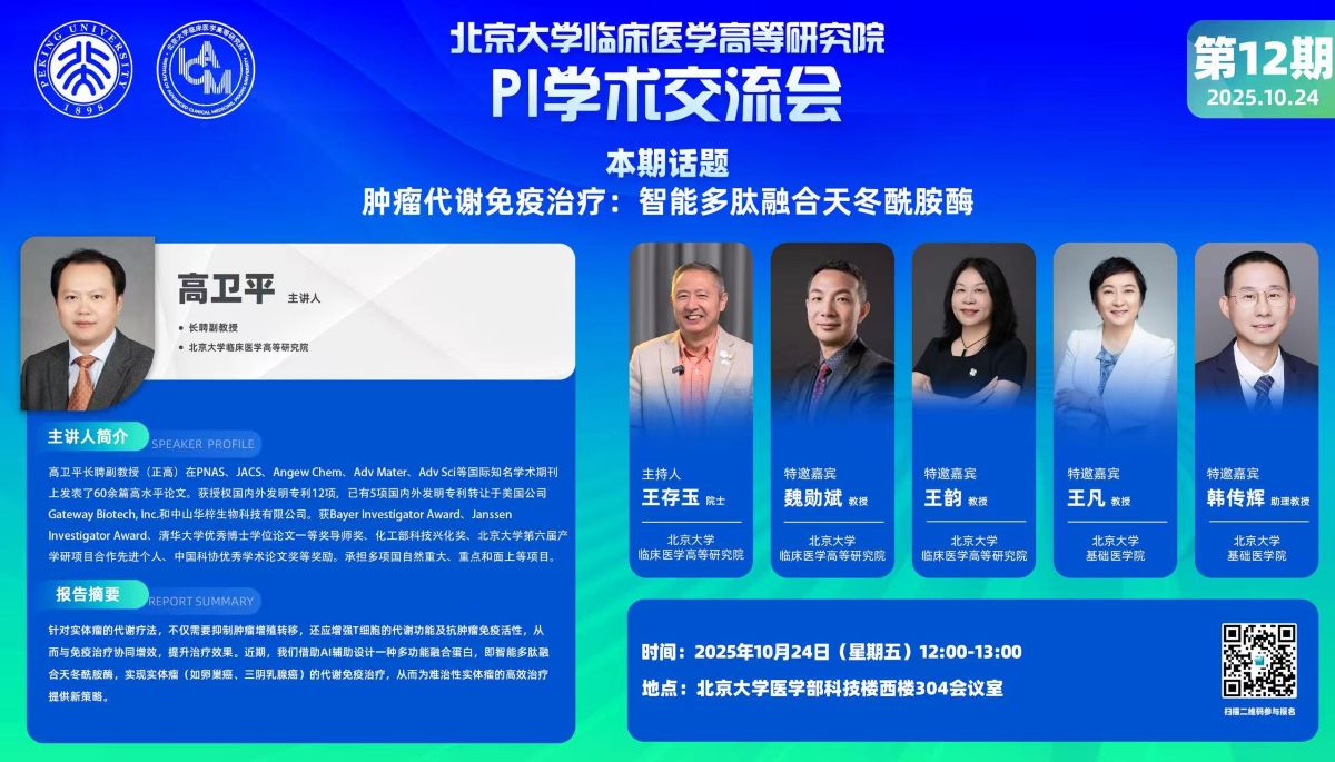 北京大学临床医学高等研究院PI学术交流会,旨在搭建高效沟通平台,促进院内学术交流和学科交叉融合。通过汇聚不同学科PI的视角和技能,增强科研凝聚力,推动科研创新和项目突破,为科研人员提供学习成长机会,助力解决医药领域关键问题和培养高水平医学科技创新人才。