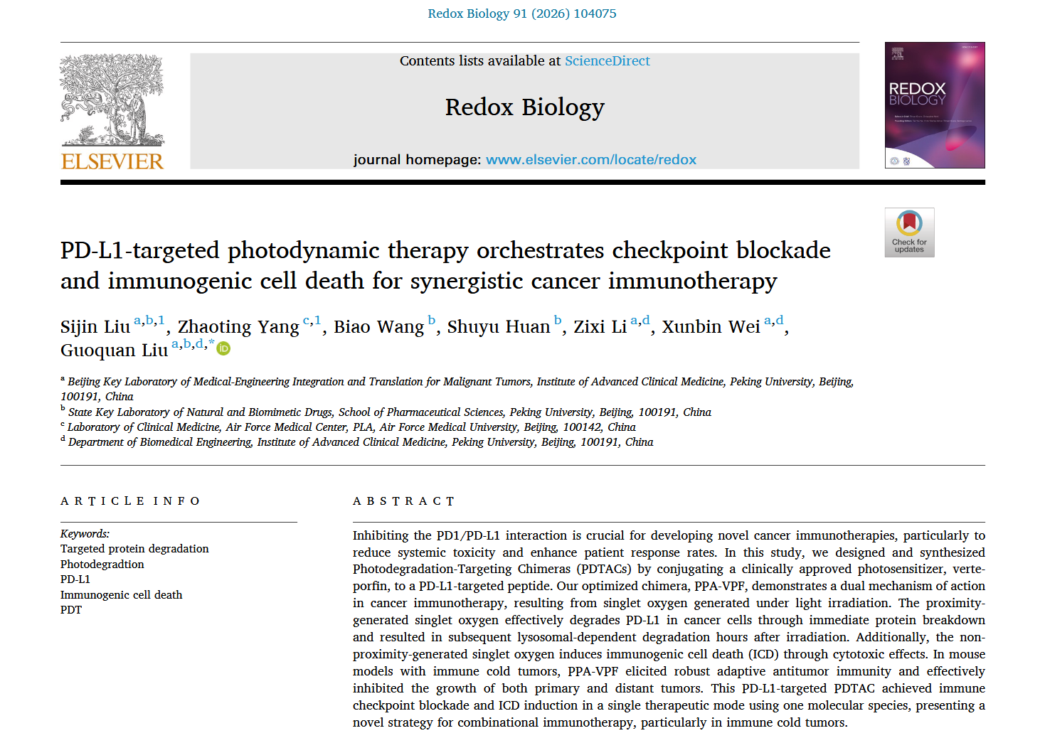 Redox Biology:刘国全/魏勋斌团队开发PD-L1靶向的光敏剂增强肿瘤光动力治疗的免疫效果