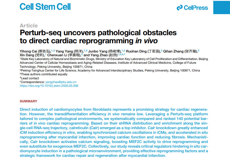 Cell Stem Cell | 赵扬团队系统解析“在体重编程”诱导心肌再生的关键病理障碍