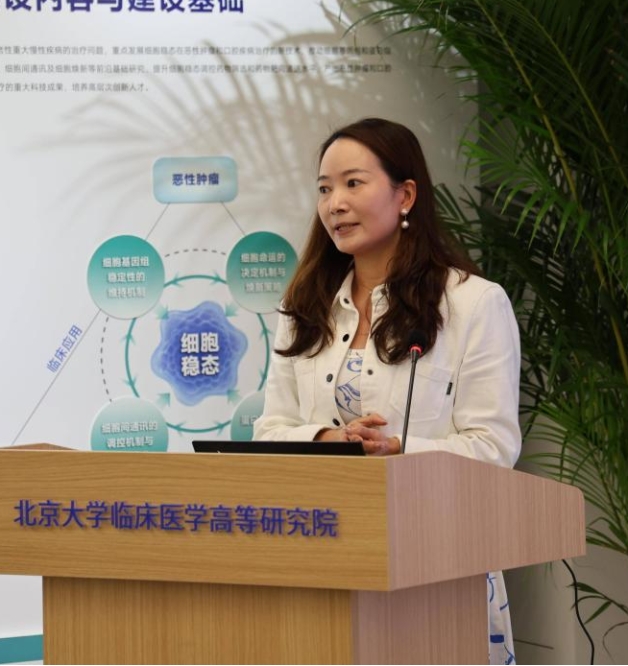 王韵教授详细介绍了高研院的整体情况。她表示,高研院以建设世界顶尖医学研究机构为目标,致力于提升临床医学学科的顶层设计与医教研统筹能力。其核心使命在于深化“医学+X”战略,汇聚北大临床医学的发展合力,构建“四位一体”发展格局;通过积极搭建临床医学+X平台、医工交叉平台、校企联合实验室等创新阵地,整合形成“一所一系两中心”的支撑体系,以引领前沿创新。